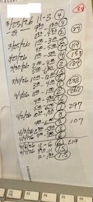 But I’m still a mostly analog girl. (Also chocolate. And jewelry. If you’re asking.) For instance, here is my time worksheet for a job I did recently for a New York publisher. Dates, time started and ended, and total hours for a client whom I just billed. (Client name hidden to protect the innocent.)
